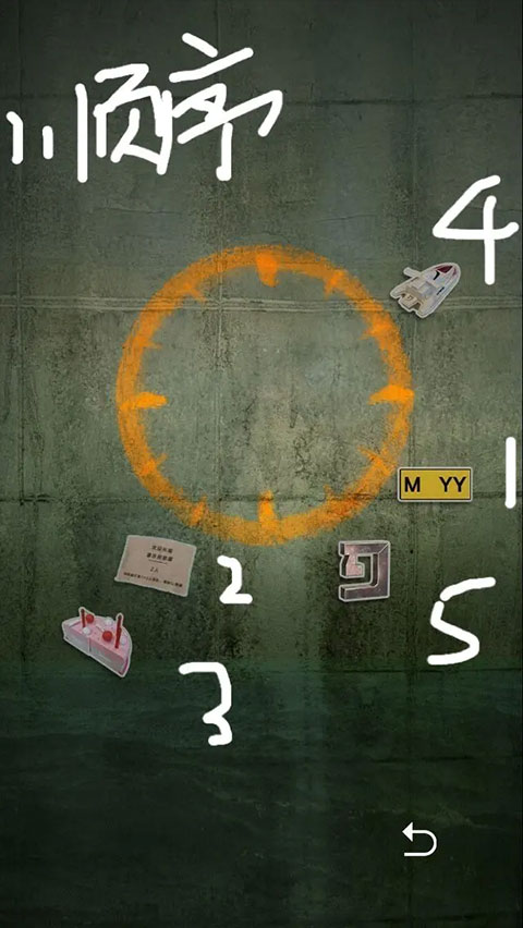 8、这时候你可以看见个圆,每个物品在物体表面和CG都有直接提示,根据合同上的数字按照钟表逆时针排序密码锁。
