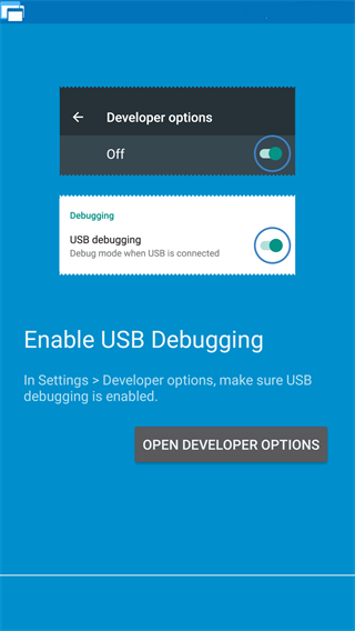在电脑上打开“ Vysor ” Chrome App ,你可以看到画面里会自动显示你需要完成的设定步骤,并且提供了教学或需要的资料下载,我们只要一步步完成就好。