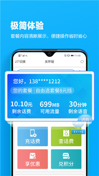 一站式支持实时话费、历史账单、4G流量、积分余额、套餐余量、已订业务、个人信息等查询,随时随地准确清晰