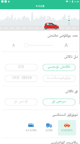 1、首先下载好本站带来的维语学车证,设置自己想要使用的语言和考试的类目