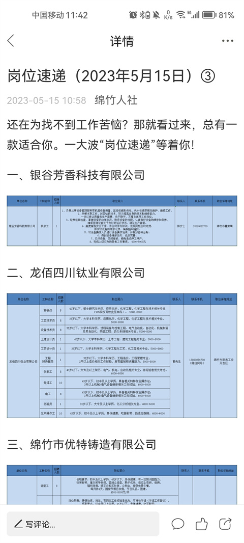 3、打开即可查看到详细的就业信息。