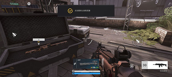 2、接着拉动操纵杆控制角色移动,并并点击图标拾取武器,步枪;