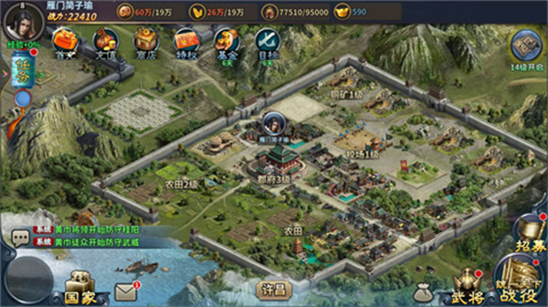 城池经营、城防建设、兵将培养多个维度发展国家。