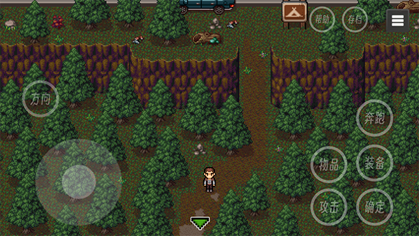 2、操作界面没有改变,依然是左下角轮盘操纵,右边有物品和装备等状态栏,存档和末日生存指南在右上角