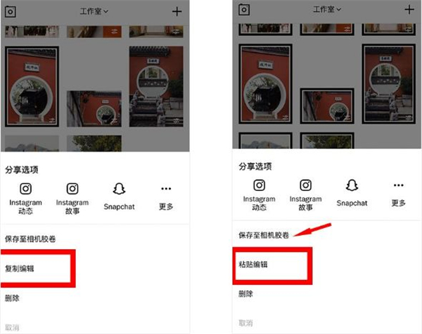 出现选项框,选择复制编辑(注:选择单张图片时才会出现复制编辑选项,如果点击不出来要注意看是否是选择广多张图片,多张长图片不支持复制参数。