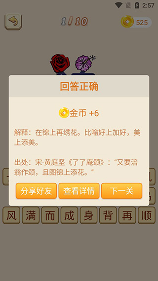 3、在闯关的过程中就可以记背更多的文学素材了,有效的增强文学表达能力。