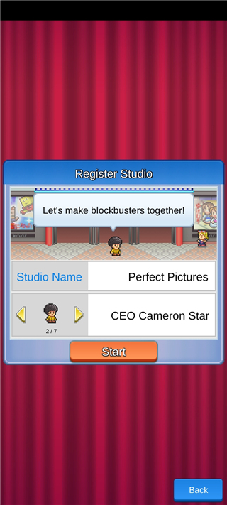 1、下载安装好电影工坊物语最新版之后,打开进入游戏,点击游戏中的Start;