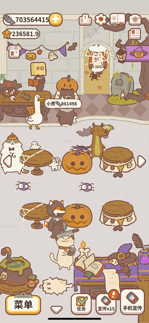 前期会比较累,因为需要非常频繁的手动拉客、点击客人要吃的食物下单、拾取地上的小鱼干。