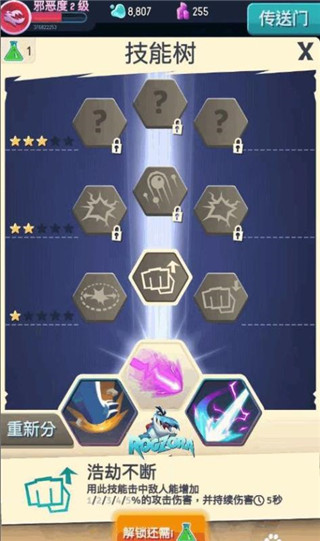 6、升级怪物(技能)。随着邪恶度的升级可以获得技能点去升级怪物的等级及怪物的技能