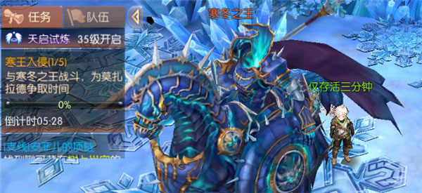 护盾被打破的寒冬之王进入狂暴状态,建议组队挑战。当BOSS被击败,或事件倒计时结束,本阶段结束,发放阶段结算奖励,事件进入下一阶段。