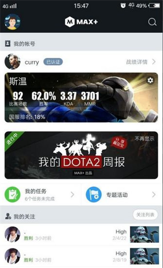 对于游戏爱好者来说,Max+ app 真的是个好帮手,方便随时查看战绩和了解游戏动态。如果你是电竞迷或者经常玩游戏,这款软件绝对值得一试!