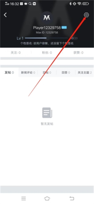 3、这样就进入到个人资料页面,接着点击右上角的“齿轮”按钮;