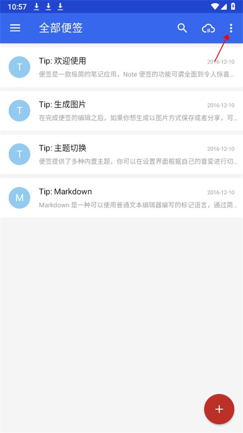 1、下载进入蜜蜂便签app,点击右上方的三个小点;