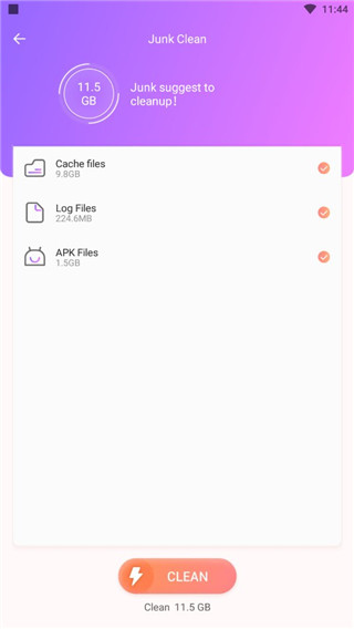1、垃圾清理:对应用程序的缓存和垃圾文件进行准确地分析。一键清除应用和系统的垃圾文件,以释放存储空间。
