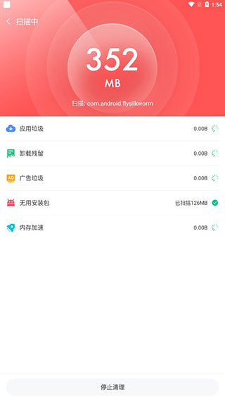 2、软件开始扫描应用垃级、卸载残留、广告垃圾、无用安装包、内存加速。