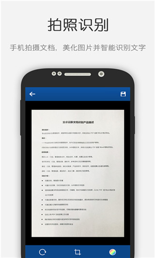 云脉OCR识别APP是一款时下非常火爆且专业好用的手机文档智能识别应用,由厦门云脉技术有限公司倾力打造。该软件界面简洁、操作便捷,内置先进的OCR光学字符识别技术,支持多种格式文件的扫描识别、图文提取、编辑、复制及保存等功能。无论是简单的文字修改还是复杂的文档处理,云脉OCR识别APP都能帮助用户高效完成任务,节省时间,告别繁琐的手动输入。软件特色:1. 免费图片转文字:可将图片中的文字快速识别并生成可编辑的TXT文本文件,方便二次编辑和使用。2. 学生福音:无需手工抄写,文档识别功能让学习资料处理更轻松高效。3. 记者利器:现场会议记录秒变文字,抢抓新闻时效,提升工作效率。4. 商务神器:快速提取各类资料文字,无需繁琐复印,轻松完成编辑写作。软件功能:1. 扫描识别:内置拍摄功能,通过OCR技术自动识别图片文字,并支持编辑、复制和分享。独特的候选字词替换功能,让识别结果更精准。2. 文档管理:提供文档分类、批量操作、快速检索等功能,方便用户高效管理文件资源;支持添加批注并轻松分享至微信朋友圈。3. 云端同步:通过账户注册实现文档云端存储,支持多终端随时查看和传输,确保文档安全便捷。4. 多功能办公:集复印机、传真机、实物拍摄及视频录像功能于一体,满足多样化办公需求。无需额外设备,即可完成高质量影像获取。软件亮点:1. 实时识别:支持自动分词和手动框选两种模式,即时获取文字信息。2. 划线取词:通过手势操作快速提取所需文本。3. 智能辅助:一键搜索、翻译功能让文档处理更高效。4. 视频通讯:支持网络视频通话,提供清晰流畅的音画体验。更新日志:v4.19.230209_230630版本1. 修复了本地识别可能导致的应用崩溃问题;2. 新增传统识别方式,优化服务程序性能。