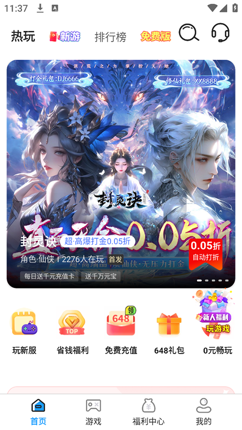 4、福利:每款游戏充值都是有折扣优惠,热门充值活动等您来抢。