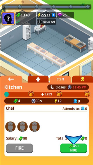 探索在此模拟器中进行投资并赚取尽可能多现金的管理策略-在线和离线均可!升级以打开新的厨房故事