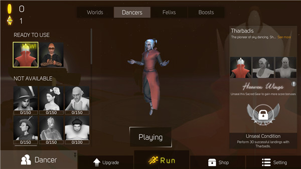 游戏还有不少独特的设定,比如天气变化、不同舞者角色以及各种挑战任务。这些元素让跑酷玩法变得更有层次感。虽然有些升级条件看起来挺苛刻的,但一步步解锁新成就也算是一种乐趣吧。
