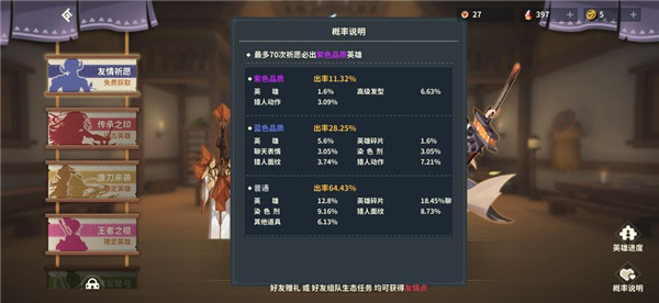 3、出英雄碎片每日单人狩猎副本(概率掉落白蓝紫英雄碎片,9星猎人以上较低概率掉落红色)。