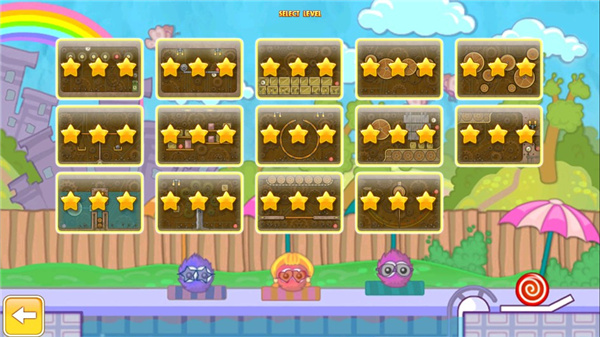 1、抓住糖果游戏中,玩家需要根据关卡地形和环境,帮助小怪物拿到它喜爱的糖。