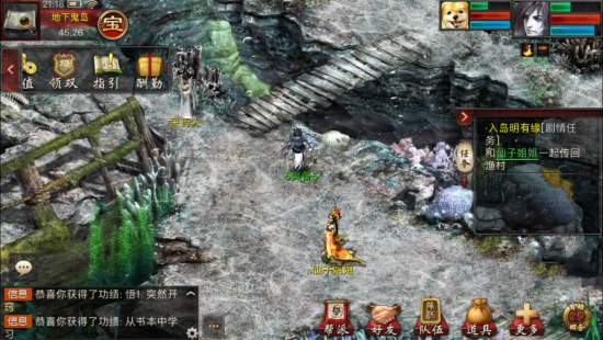 操作简单解放双手,上 班也能抽空挂机轻松玩!组队杀怪还能同时好友畅聊,个性名片,真人社交,各路侠士携手同行,共闯大话江湖南北方。