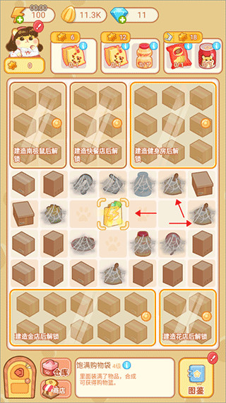 5、点击合成,把相同的物品放一起就能消除并合成一个新的