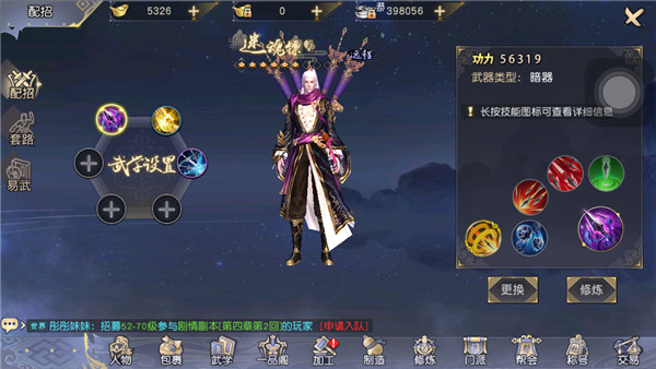 1、武学搭配:迷魂镖(推荐)/玲珑骰+心佛掌+其他任意高输出套路