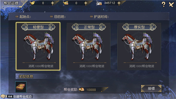 成功运镖后规定时间内,成功将镖车护送至目的地,则运镖成功,运镖帮会以及玩家将可以活动活动奖励