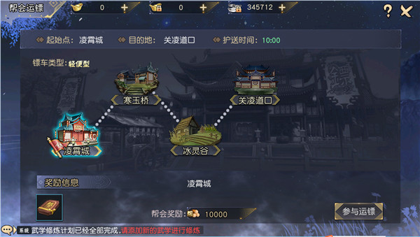帮会运镖:帮会运镖活动开启后,帮众可以选择帮会-->活动-->帮会运镖-->参与运镖,进入活动
