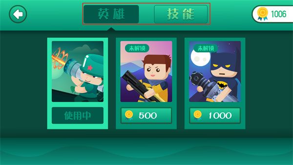 7、玩家可以点击英雄和技能通过奖励来进行解锁;