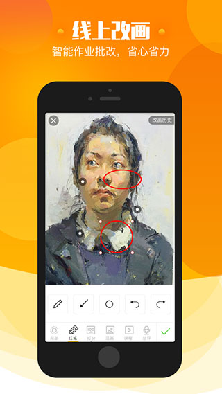 首创“语音打点+红笔批改”评画功能,多维度点评上传作品,实时在线交流解决画画过程中遇到的各种问题。