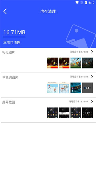 3、一键清理相似照片、截图、连拍,彻底释放大量手机内存空间。
