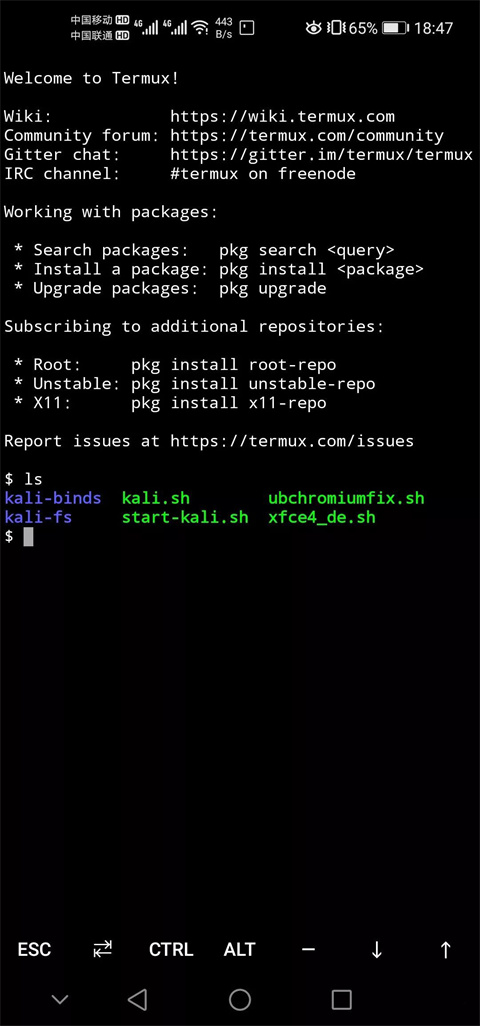 - 安装并打开Termux,进入shell界面。