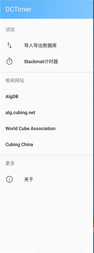 你可以看见,这里可以导入导出数据,也可以连接Stackmat计时器,下面也有一些魔方网站可以访问以及App的信息