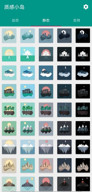 1、美丽的形状和颜色的动态,简单的数字和形状相结合,产生不同类型的岛屿,并根据每天的时间每个岛屿的外观发生变化。2、内置了 6 种不同的动态主题,分别是:雪山之岛、冰山之岛、沙漠之岛、熔岩之岛、天堂之岛和都市之岛。所有壁纸均采用 MD 设计,构图简约,本站优美,简单点击即可设定为当前壁纸