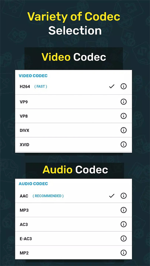 - 支持多种编解码器(如h264、mpeg4、aac、mp3等)和压缩选项,包括高质量压缩模式和精确控制比特率的选项。