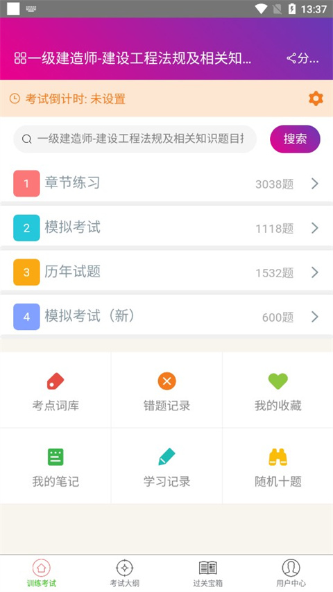 1、进入软件首页,可看到在顶端支持设置考试倒计时,督促用户努力学习;