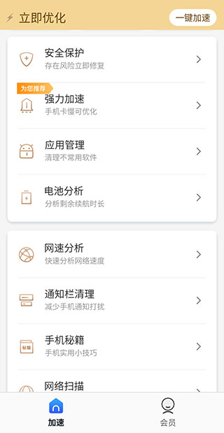 1、打开app之后,我们先点击上方的【一键加速】按钮。