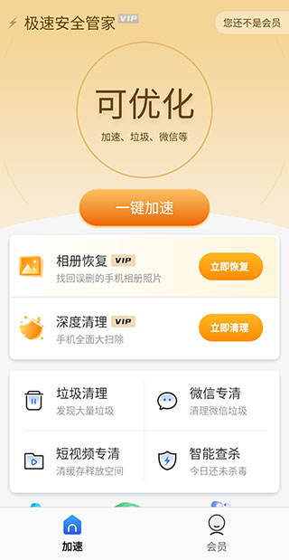 极速安全管家App中还特别优化了一键加速功能,该功能可以快速释放手机内存,提升运行流畅度。而同时新增的图片专清功能,还可以一键智能清理应用缓存图片,有效解决手机卡顿问题,深度清理应用缓存垃圾,优化手机内存空间,提升手机运行速度,保护手机,拒绝卡慢!而针对用户操作方面,极速安全管家app减少了包体大小,从而提高运行速度,有需要的朋友可以前来下载体验一下!