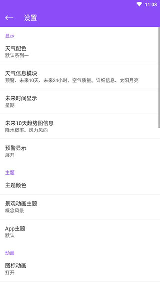 - 展示最新的天气更新时间,并提供通知提醒功能。