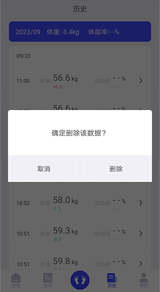3、历史页面中可以长按一项历史数据进行删除