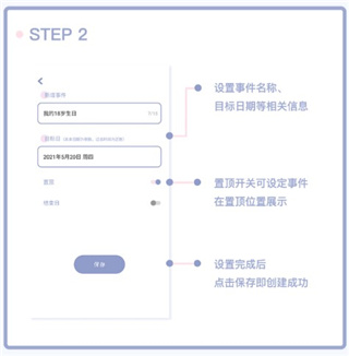 1、设置事件名称、目标日期等相关信息;