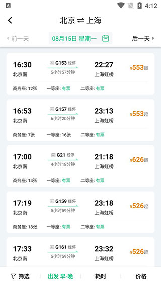 4、【抢票软件】准点抢火车票,火车票预订普通车次、高铁、动车信息实时查询,专业准时不误车,火车票抢票超给力。