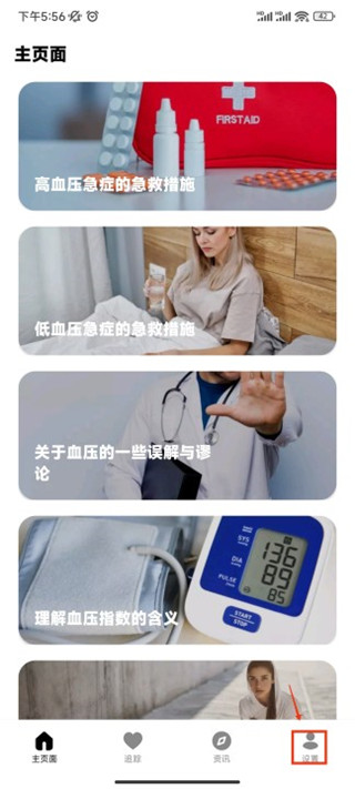 1、下载进入血压追踪器app,选择下栏的设置按钮;