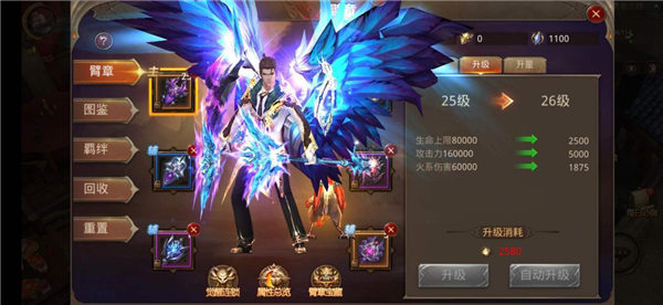 在获得臂章的同时,我们可以通过升级和升星对拥有的臂章进行提升来提升基础属性,提升的等级越高,所获得的属性也强。