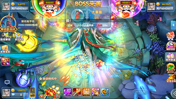 4、千炮不够爽?万炮等你来,轻松直升功能让你打造强力炮台捕鱼所向披靡