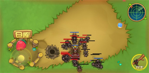 2、操作非常简单,利用屏幕左边进行蚂蚁控制,右边则是攻击和采集等操作;