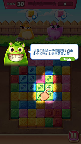 5、单击相同的饼干以消除。饼干吃得越多,小猫恢复能量的速度就越快。