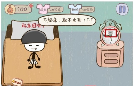 本关主要的难点在于不能让闹钟响起,因此玩家需要做的是点击闹钟,让中间的AM变成PM,如此一来就可以过关了。